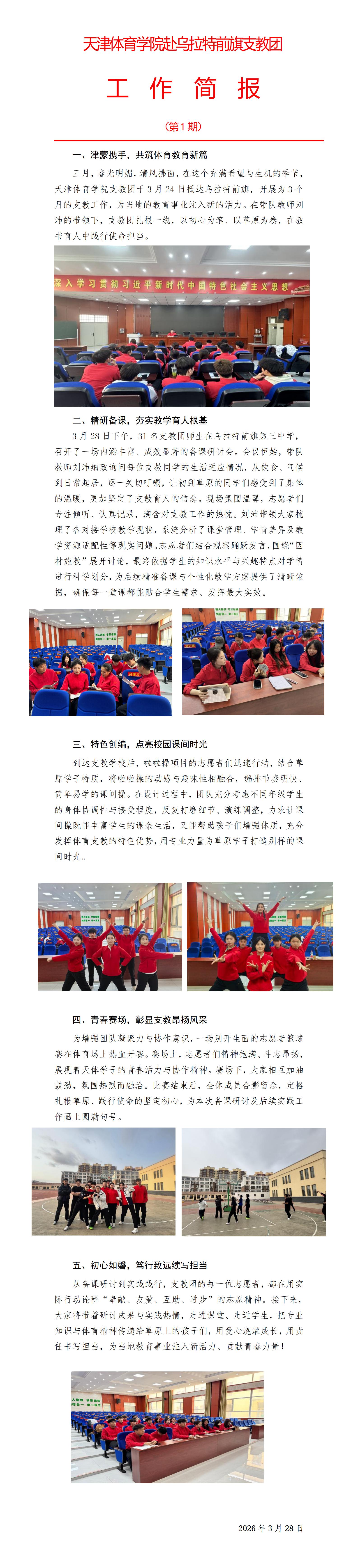 天津体育学院赴乌拉特前旗支教团工作简报-第一期
